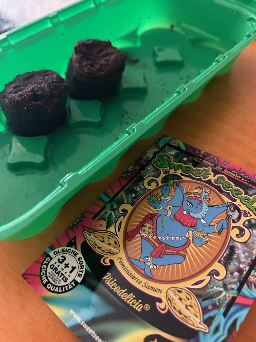 Lo monté todo entre Navidad y Año Nuevo en el piso y, como no podía esperar más, el 30.12. planté directamente dos granos de la Psicodelicia. Por un lado quería cultivar esta genética yo mismo, porque la probé hace un tiempo y me enamoré. Y por otro, quería ver qué tal me llevo con plantas fotoperiódicas, ya que en exterior me fue bastante bien con automáticas y F1 Fast Versions.